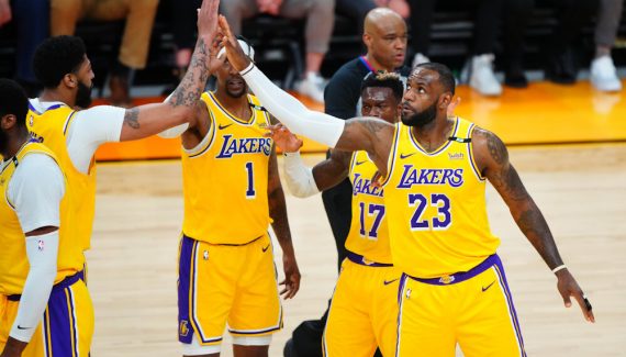 C’est alors qu’Anthony Davis, au contre, à 3-points puis aux lancers-francs, et LeBron James, d’un énorme « fadeaway » ligne de fond, prennent les choses en main pour mettre les “Purple & Gold” à +8, à deux minutes de la fin. La défense des champions en titre est clairement montée d’un cran dans ce « money-time » et ce coup d’accélérateur ne peut qu’être fatal aux joueurs de Phoenix, trop courts et toujours privés de Chris Paul, qui déposent les armes sur un dernier 3-points de LeBron James puis un ultime dunk d’Alex Caruso, avant un jeu de lancers-francs (109-102).
