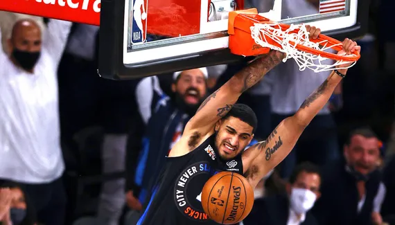 Quatrième quart-temps du Game 2 entre les Knicks et les Hawks. À une dizaine de minutes de la fin du match, New York a complètement inversé le “momentum” de cette partie, dans une ambiance de folie. Et sur une contre-attaque éclair menée par Alec Burks, Obi Toppin fait exploser le Madison Square Garden sur un “alley-oop”, qu'il célèbre en levant les bras en l'air et en incitant les fans à faire encore plus de bruit.
