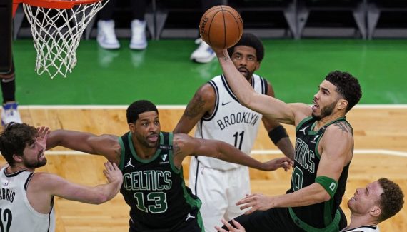 Marcus Smart s’accroche avec son ancien coéquipier, puis plante deux banderilles de loin sur la truffe de l’ancien de la maison, qui a la tête des mauvais soirs. À ses côtés, Jayson Tatum est dans tous les bons coups, et il donne une leçon de basket à tous les Nets, qui n’arrivent pas à le calmer durant ce troisième quart (40 points déjà !). Les fans sont debout, et les Celtics prennent le large (96-84).