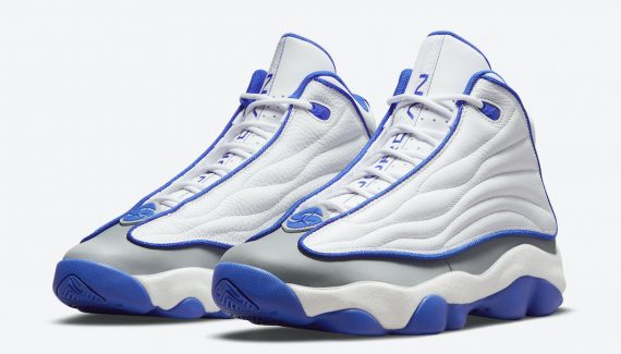 C’est le cas de la Jordan Pro Strong, sortie en 1998 et qui avait déjà été relancée en 2018 pour ses 20 ans avec de nouveaux coloris. La voilà de retour avec cette fois une version « bleu royal », qui vient se mêler à la structure en mesh blanc et en cuir gris. Le nom « Jordan » apparaît en bleu royal sur la languette tout comme le jumpman au niveau du talon. La semelle blanche est bleu est dotée du coussin Nike Zoom Air.
