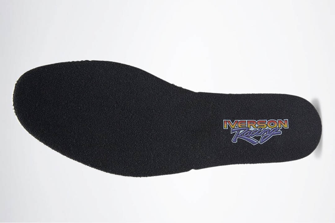 Le logo I3 ainsi que celui de « Cru Thik » (du nom de la maison de disques d’Allen Iverson), présent sur la languette, apparaissent en jaune. Autre petit détail sympa présent sur la semelle intérieure avec l’inscription « Iverson Racing ».