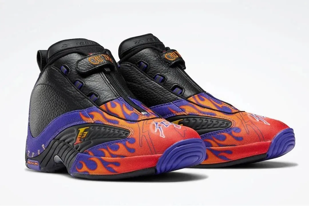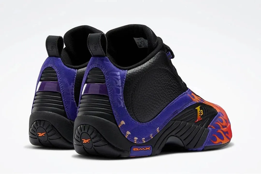 Reebok avait déjà doté sa Question Mid d'un modèle « Motorsports ». Cette fois, c'est à la Answer 4 d'opérer un retour aux stands pour être “pimpée” sur le même thème du sport auto. Celui ressort particulièrement avec une imitation « hot rod » de flammes et une bande violette qui parcoure la chaussure, majoritairement noire, sur sa longueur.