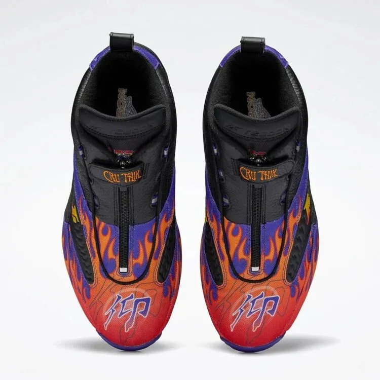Le logo I3 ainsi que celui de « Cru Thik » (du nom de la maison de disques d'Allen Iverson), présent sur la languette, apparaissent en jaune. Autre petit détail sympa présent sur la semelle intérieure avec l'inscription « Iverson Racing ».