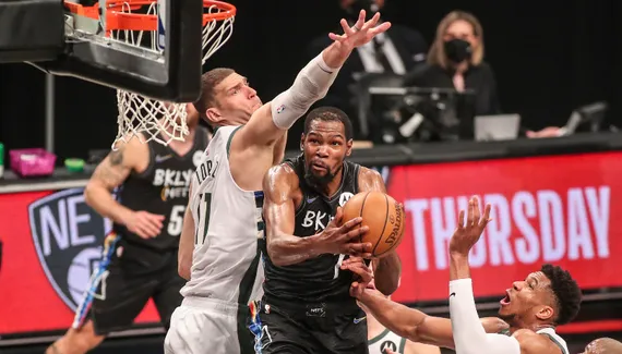 Avec Bruce Brown en lieu et place de James Harden, les Nets mettent une grosse intensité et le Barclays Center se réveille dès les premières séquences après une claquette énorme de Blake Griffin qui retrouve du feu dans les jambes. L'ancien de la maison Brook Lopez plante deux banderilles de loin, mais Kevin Durant sort déjà le grand jeu et il noircit la feuille à vue d’œil (13 points déjà).