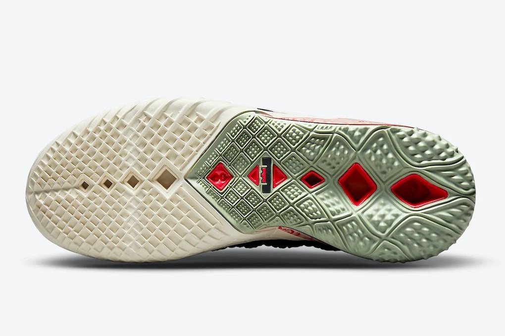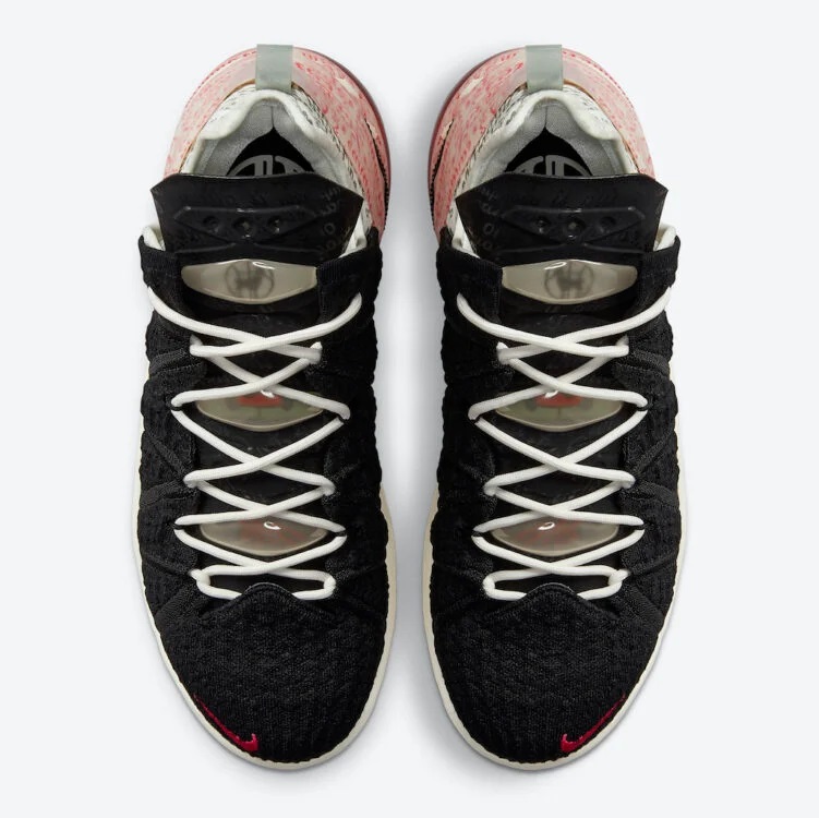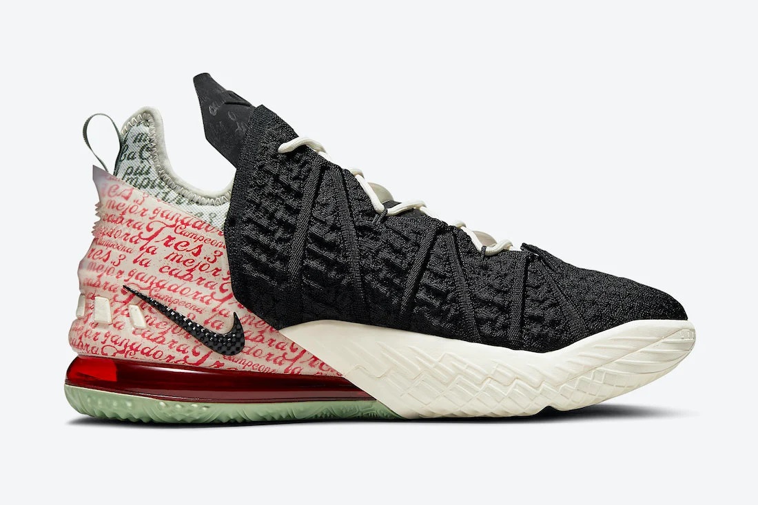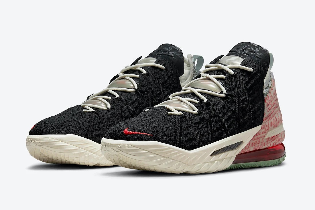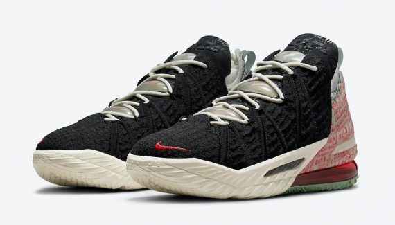 Pour Nike, LeBron James est le « Goat » (pour « Greatest of all time » soit le meilleur de tous les temps) et l’annonce en dévoilant la LeBron 18 du même nom. Le modèle est à dominance noire sur la tige tricotée, avec du blanc pâle sur l’avant de la semelle en caoutchouc également rouge et grise à l’arrière.