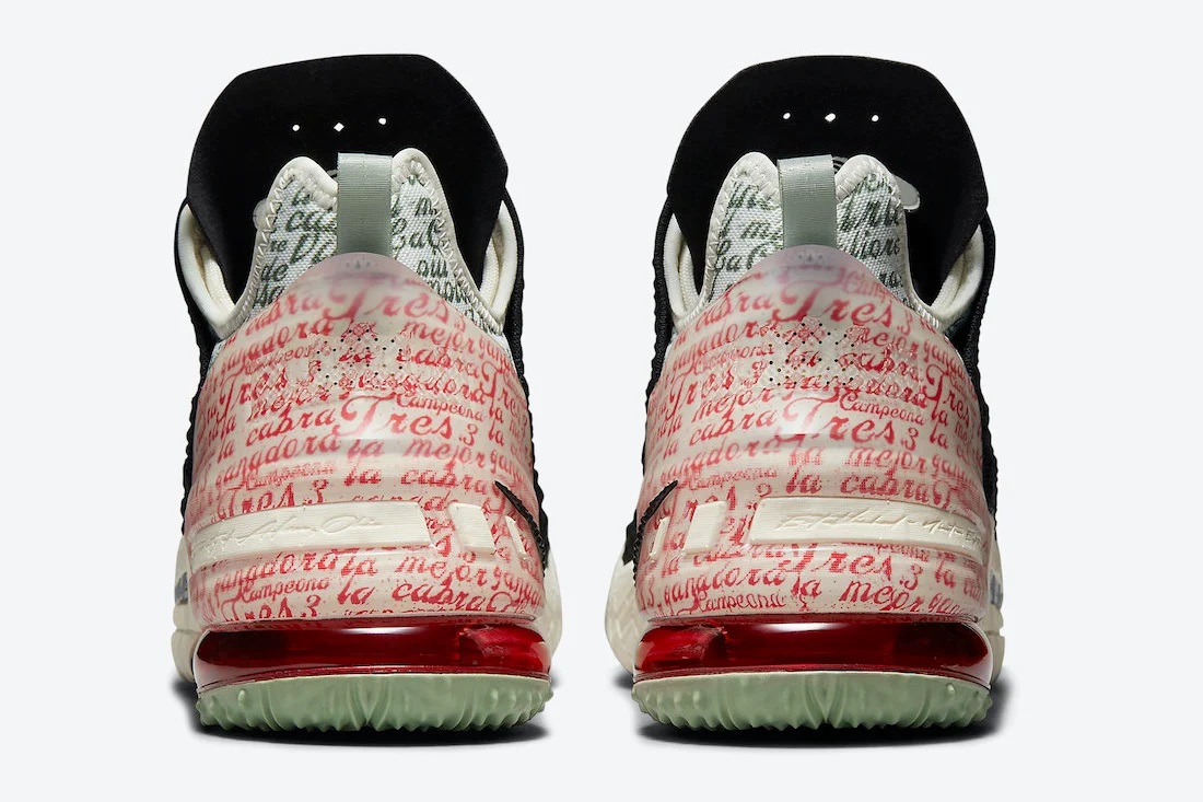 Mais l’innovation réside dans la présence d’inscriptions en espagnol au niveau du talon, faisant référence à « la gagne » avec des mots comme « La cabra » (la chèvre, appelée « goat » en anglais), « Campeona » (championne) et « mejor ganadar » (qu’on pourrait traduire comme “meilleur gagnant”).
