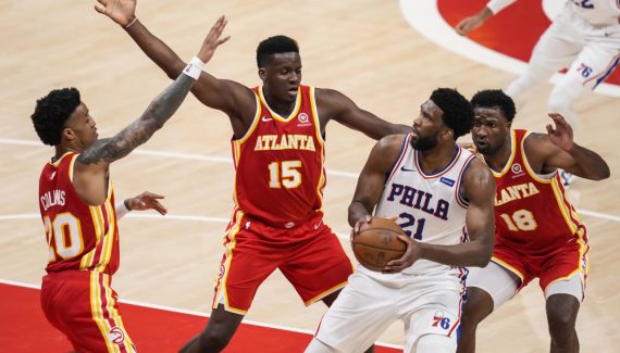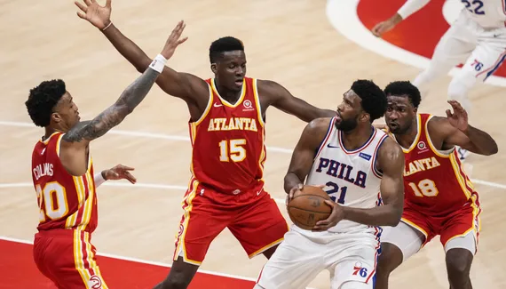 Sur une mauvaise réception, Embiid se touche le genou, mais il ne veut pas sortir ! Et sur l’action suivante, il rassure son camp en prouvant qu'il peut continuer à écraser ses vis-à-vis. Touché au dos, à la cheville et donc encore au genou dans ce Game 3, Embiid a sans cesse répété qu’il ne laisserait jamais tomber ses coéquipiers, et les Hawks sont tout simplement impuissants. A ses côtés, Harris et Simmons sont parfaits dans cette fin de match et Philadelphie en profite pour récupérer l’avantage du terrain grâce à cette belle victoire (127-111).