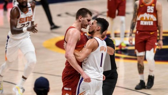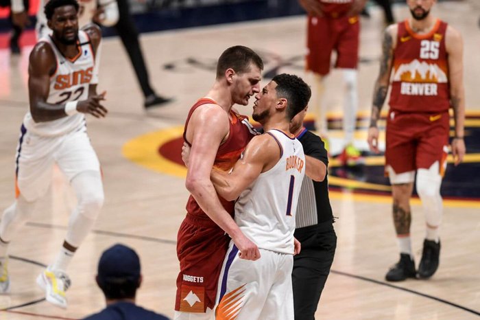 Il restait alors quatre minutes dans le 3e quart-temps, et Denver était à -8. Cette faute a évidemment chauffé les esprits, et notamment Devin Booker qui s’en est allé demander des explications à Nikola Jokic, récoltant au passage une faute technique.