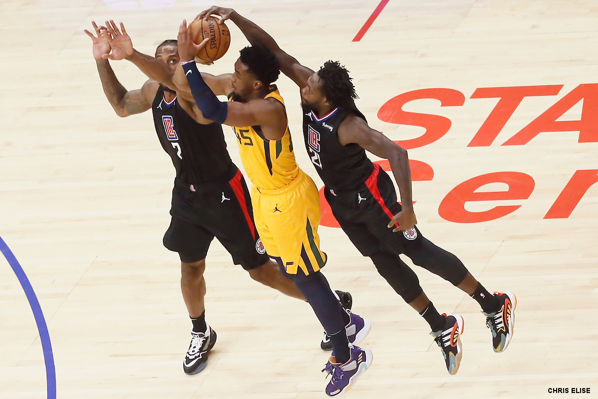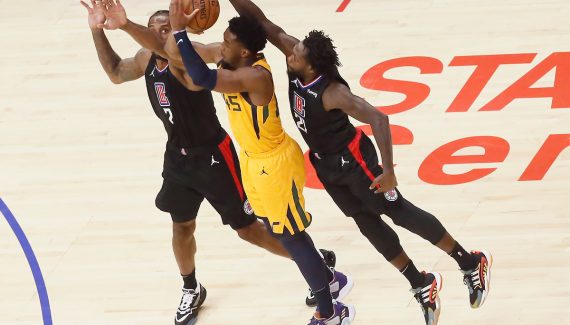 Bojan Bogdanovic claque un dunk d’entrée mais les Clippers répondent par un 10-0 avec Kawhi Leonard et Marcus Morris qui ont déjà réglé la mire à 3-points et Paul George qui frappe à mi-distance. Mike Conley toujours absent, Donovan Mitchell et Royce O’Neale essaient de calmer le jeu mais George enfonce le clou et Los Angeles crée déjà un écart à 18-6.