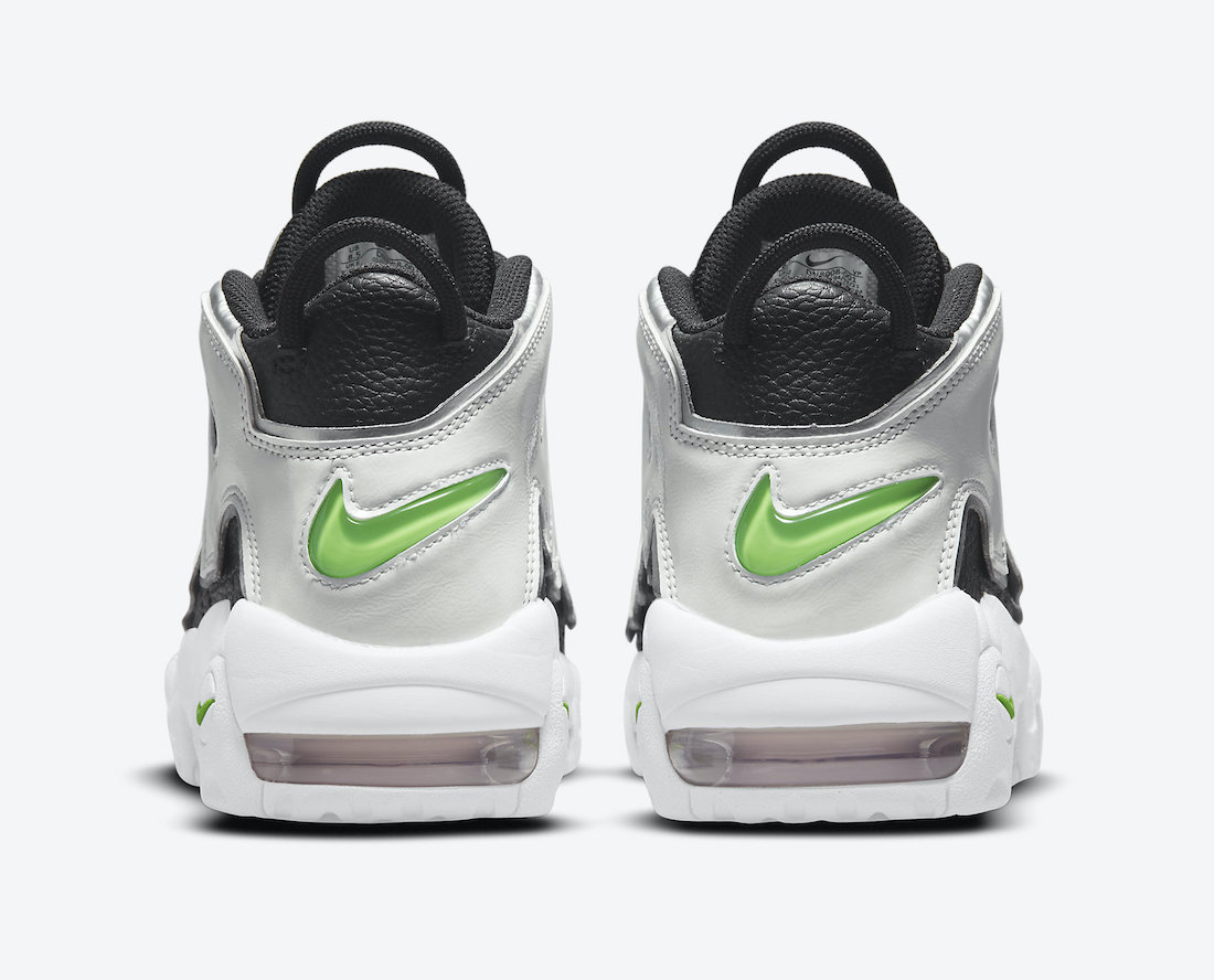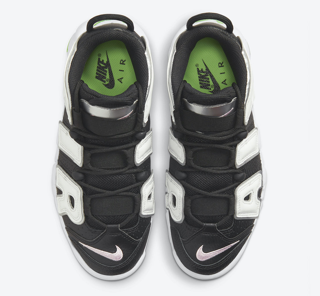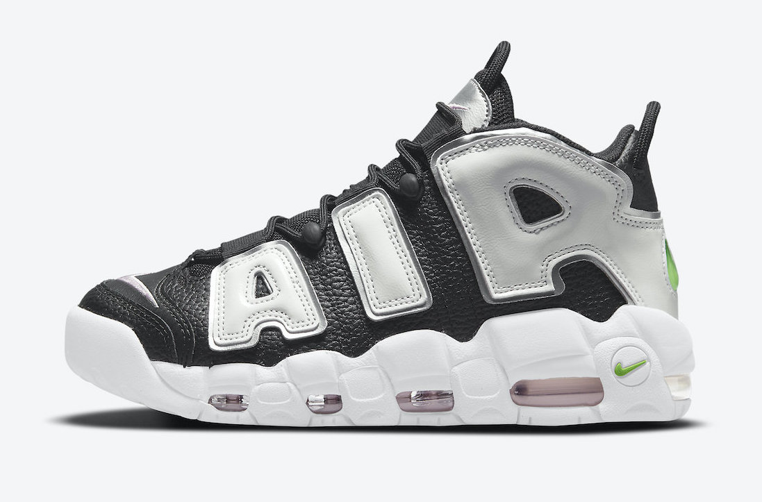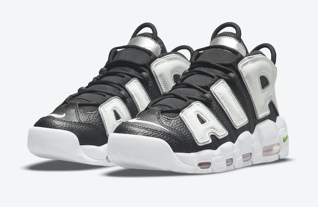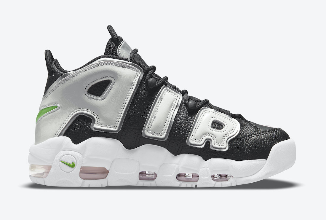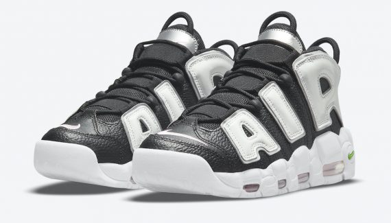 Popularisée par Scottie Pippen dans les années 90, la Nike Air More Uptempo fait régulièrement son retour sur le marché dans de nouvelles déclinaisons. Rien d’extravagant pour le prochain modèle à venir, attendu cet été, avec une tige en cuir noir marquée de l’inscription « Air » en blanc argenté.