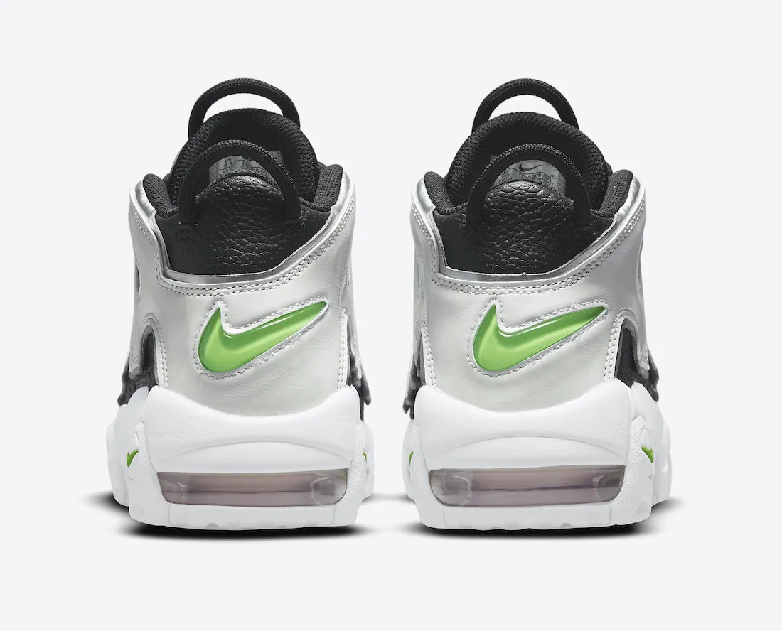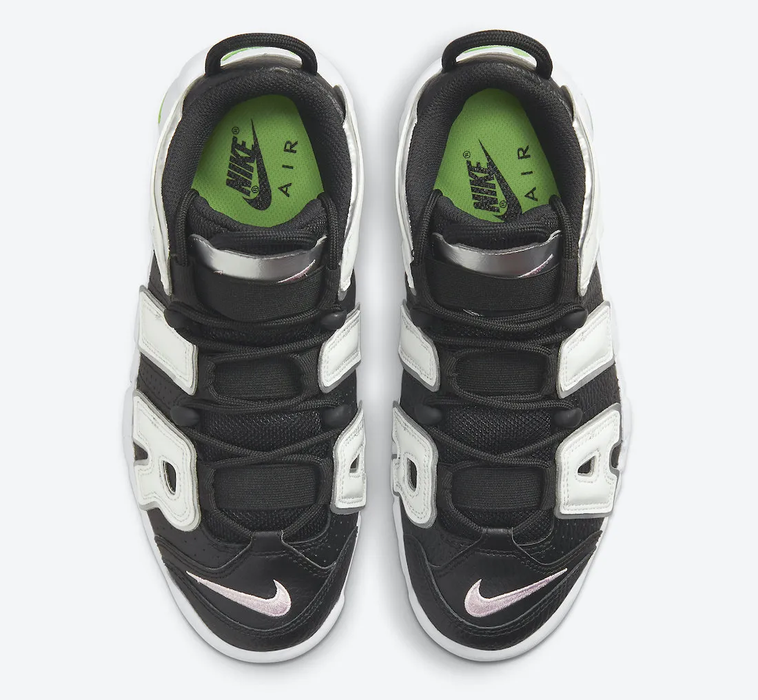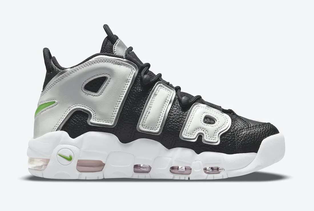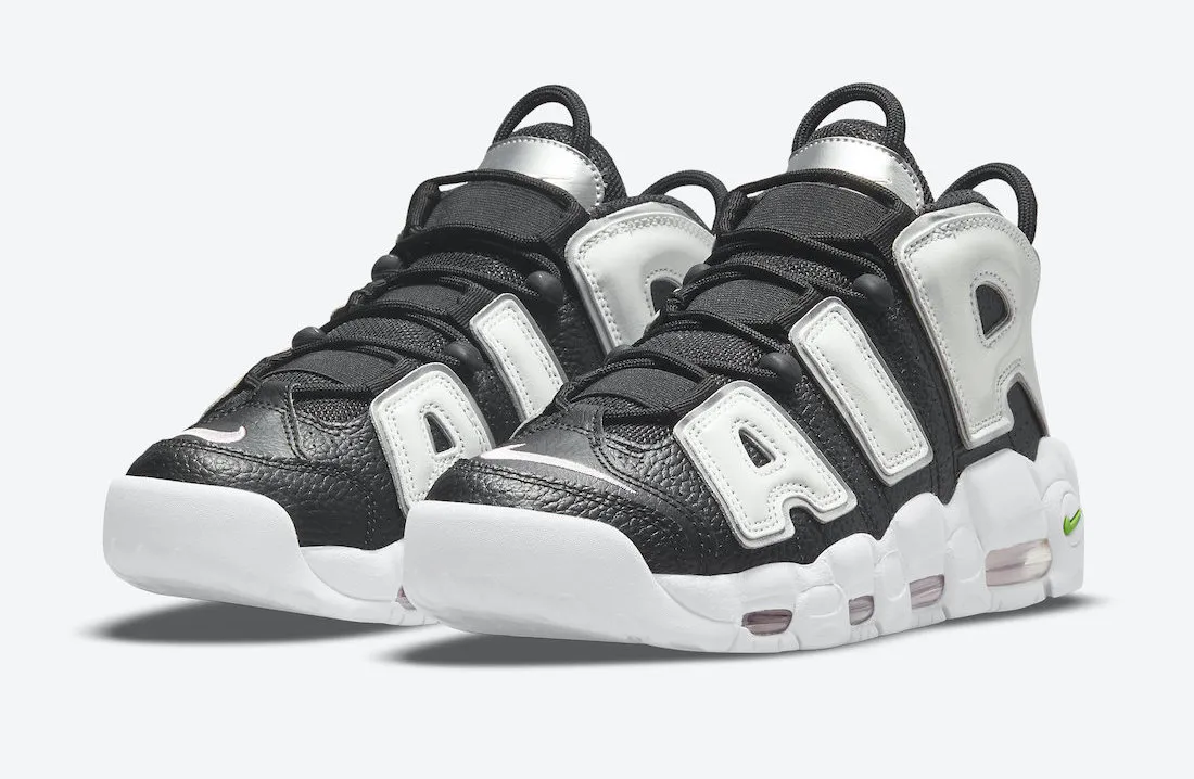 Popularisée par Scottie Pippen dans les années 90, la Nike Air More Uptempo fait régulièrement son retour sur le marché dans de nouvelles déclinaisons. Rien d'extravagant pour le prochain modèle à venir, attendu cet été, avec une tige en cuir noir marquée de l'inscription « Air » en blanc argenté.