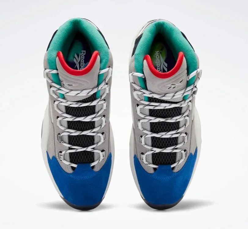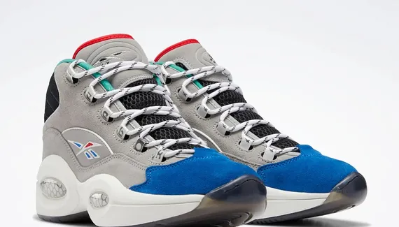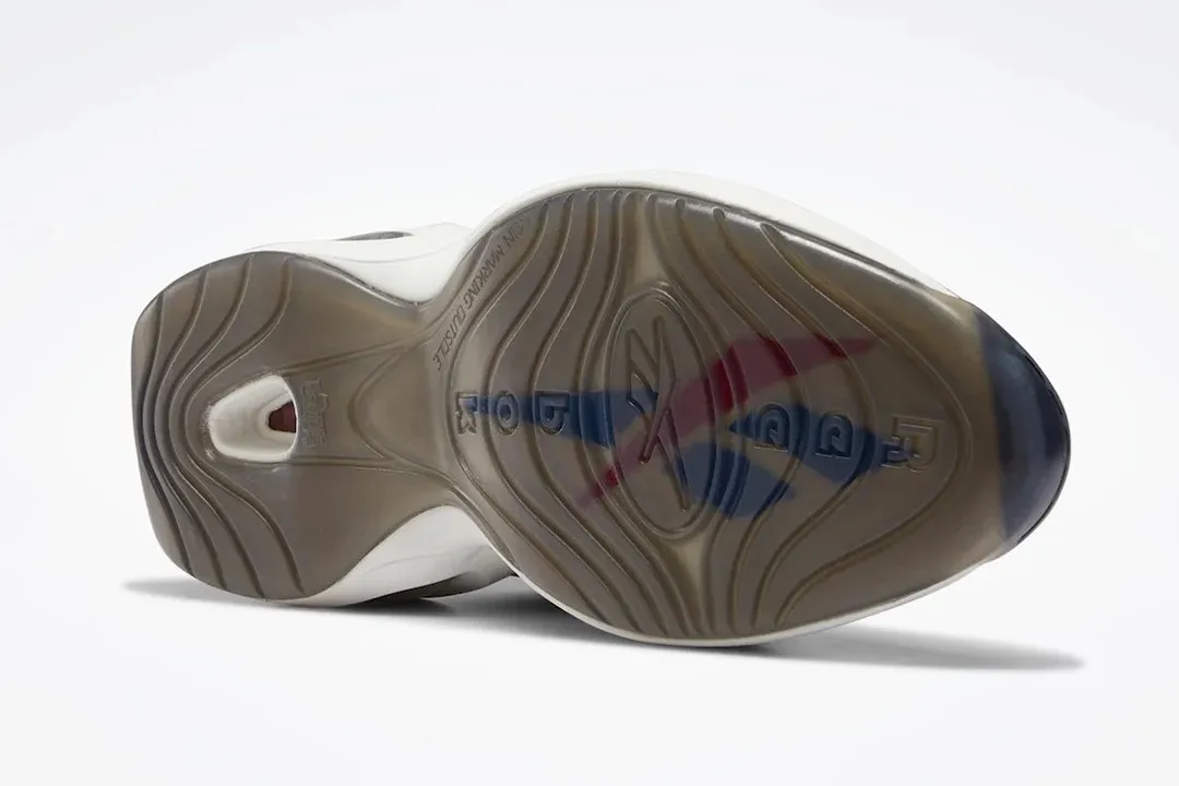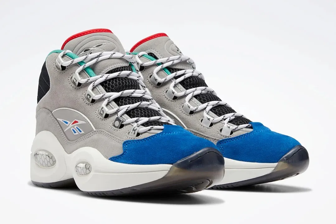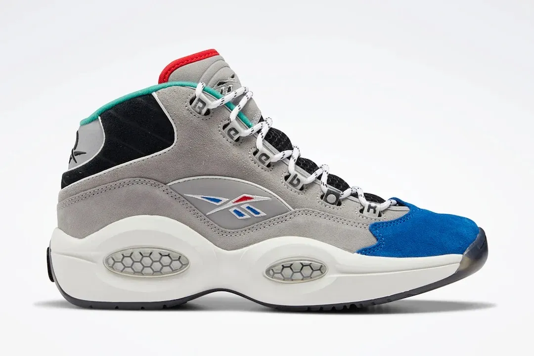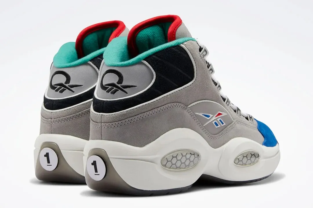 Le logo de la marque Reebok ressort en bleu et rouge, couleurs de la franchise des Sixers. A noter sur le talon, le « 1 » remplace le traditionnel « 3 », en référence cette fois au choix de Draft d'Allen Iverson. La semelle intermédiaire en EVA est blanche, la semelle extérieure est en noir translucide pour compléter la basket.