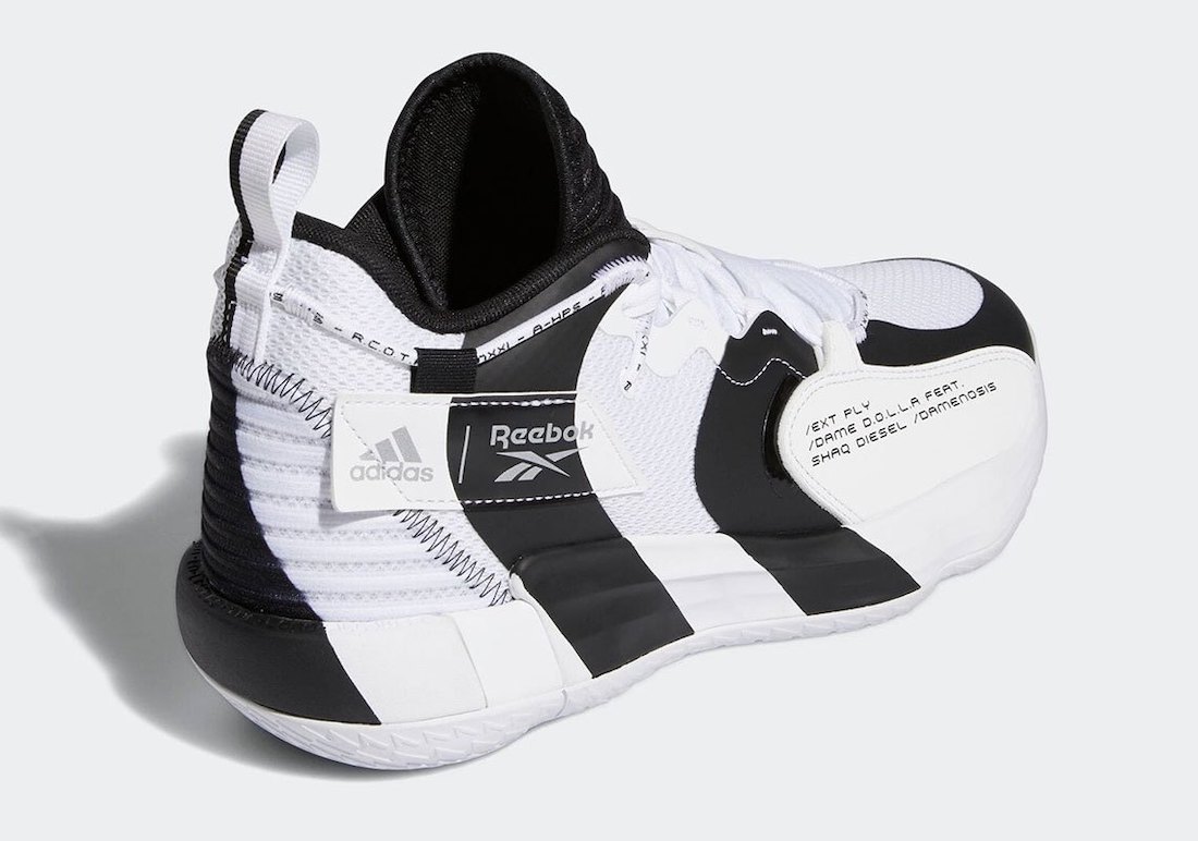 Comme son nom l’indique, cette version « best of both worlds » s’inspire de la Dame 7 et de la version noire et blanche de la Shaqnosis. La paire est dotée d’une tige blanche et noire en mesh avec des superpositions en cuir et nubuck.
