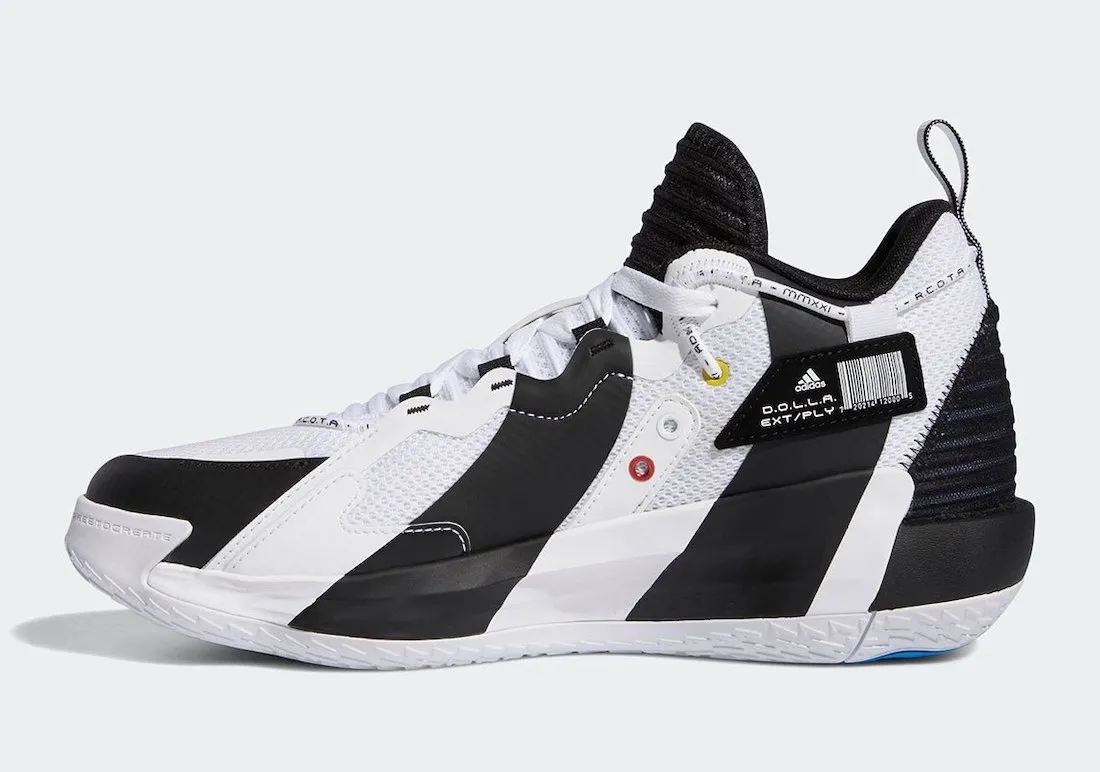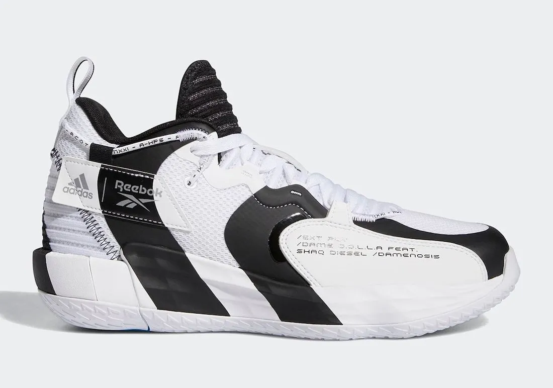 Comme son nom l'indique, cette version « best of both worlds » s'inspire de la Dame 7 et de la version noire et blanche de la Shaqnosis. La paire est dotée d'une tige blanche et noire en mesh avec des superpositions en cuir et nubuck.