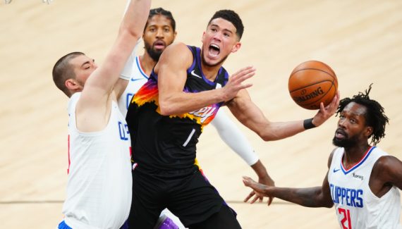 En patron, Devin Booker répond à son tour avec deux paniers dont un missile de loin en transition (83-84). Auteur de 18 points sur la période, l’arrière tient son équipe à bout de bras sur la fin du troisième quart-temps, enchaînant trois merveilles à mi-distance, « à la CP3 ». Mais Paul George est également en feu et plante son 7e panier à 3 points de la soirée pour égaliser à 90-90 à 12 minutes de la fin !
