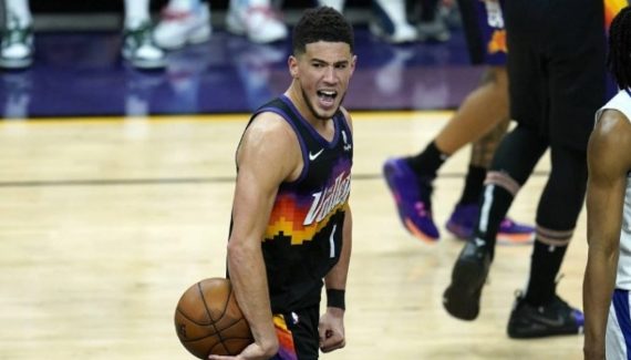 Chris Paul absent, c’est vrai que l’arrière All-Star n’a pas tiré la couverture à lui, ni cherché à en faire trop. C’est véritablement après la pause qu’il est monté en régime avec une série de shoots difficiles, mais réussis. Du très grand Booker. Le tout en faisant jouer les autres, et en donnant un coup de main au rebond.