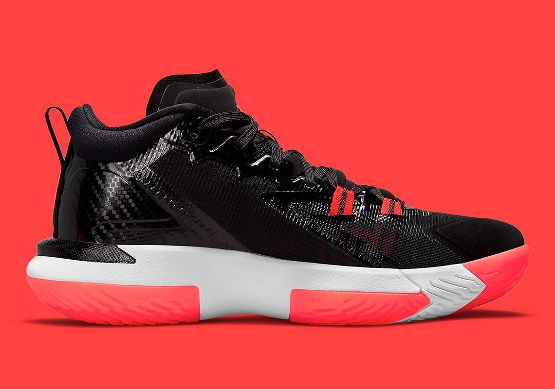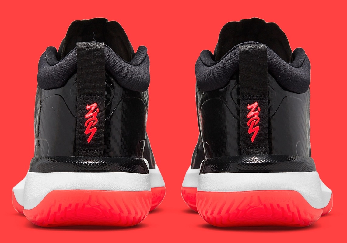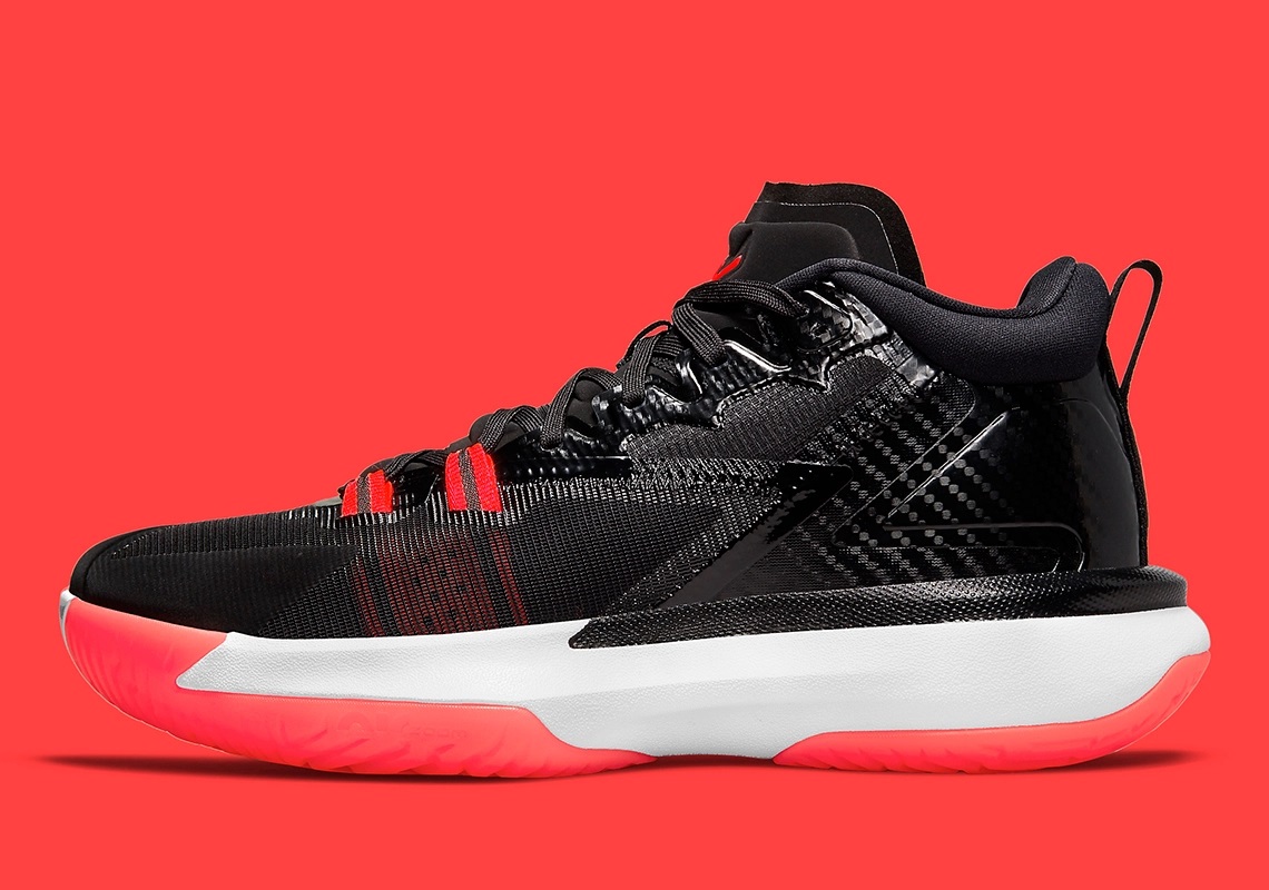 On distingue à peine le Z sur l’empeigne, censé représenter la marque de fabrique de cette première chaussure signature de Zion Williamson dessinée par Jordan Brand. Avec cet assemblage de couleurs, on pencherait plutôt vers un hommage à Michael Jordan et à son époque des Bulls, et elle rappelle d’ailleurs la Air Jordan 11.