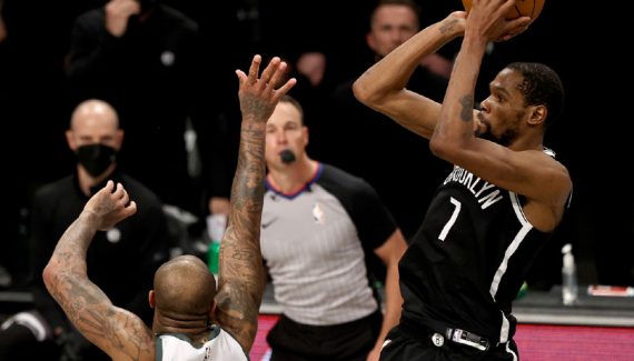 Si Kevin Durant avait fait une pointure de moins, l’histoire de ces playoffs 2021 eut été différente… Néanmoins, avec son superbe shoot dans le Game 7 face aux Bucks, quasiment au buzzer, l’ailier des Nets est au sommet des plus belles actions de ces demi-finales de conférence.