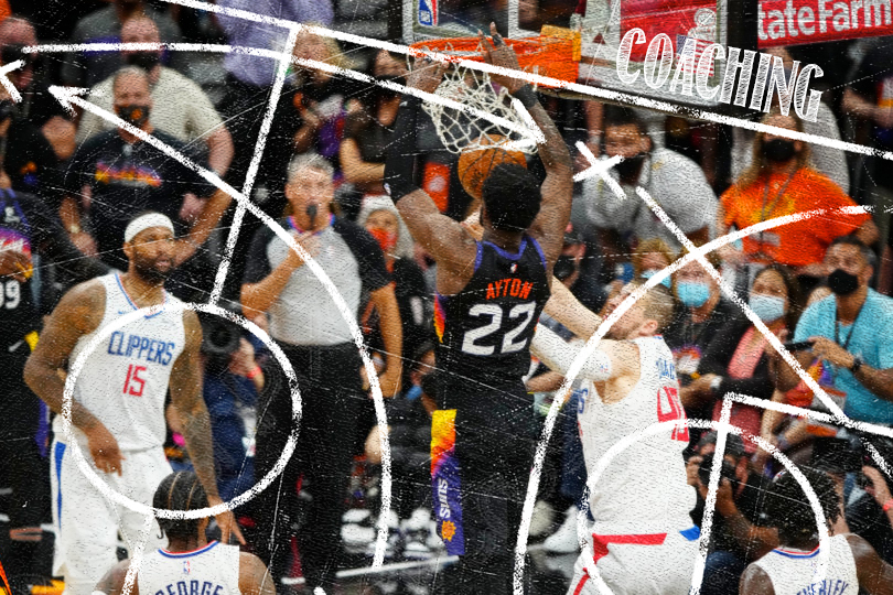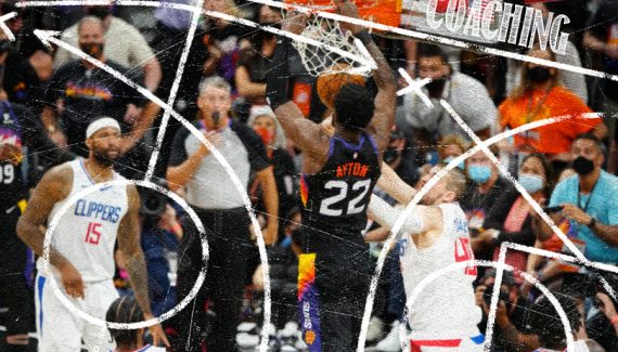 Et tout s’est passé comme Monty Williams pouvait le rêver. Le coach a expliqué avoir “piqué” ce système à Brett Brown, avec lequel il a travaillé à Philadelphie, et Joe Prunty. Le design est simple, car il y a de toute façon peu de temps pour le mettre en place. Il s’agit d’un système à eux options principales : soit Devin Booker sur le côté gauche du terrain si la défense “switche”, soit Deandre Ayton au alley-oop si la défense ne change pas.