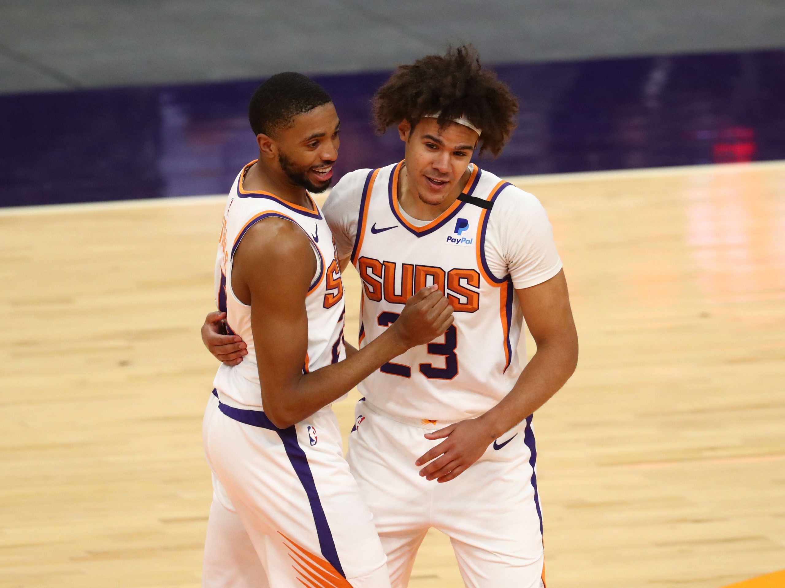 Dans des rôles plus obscurs que leur pivot et leur arrière All-Star, Mikal Bridges et Cameron Johnson font forte impression. Nés la même année que Devin Booker (1996), les deux compères s’éclatent l’un à côté de l’autre.
