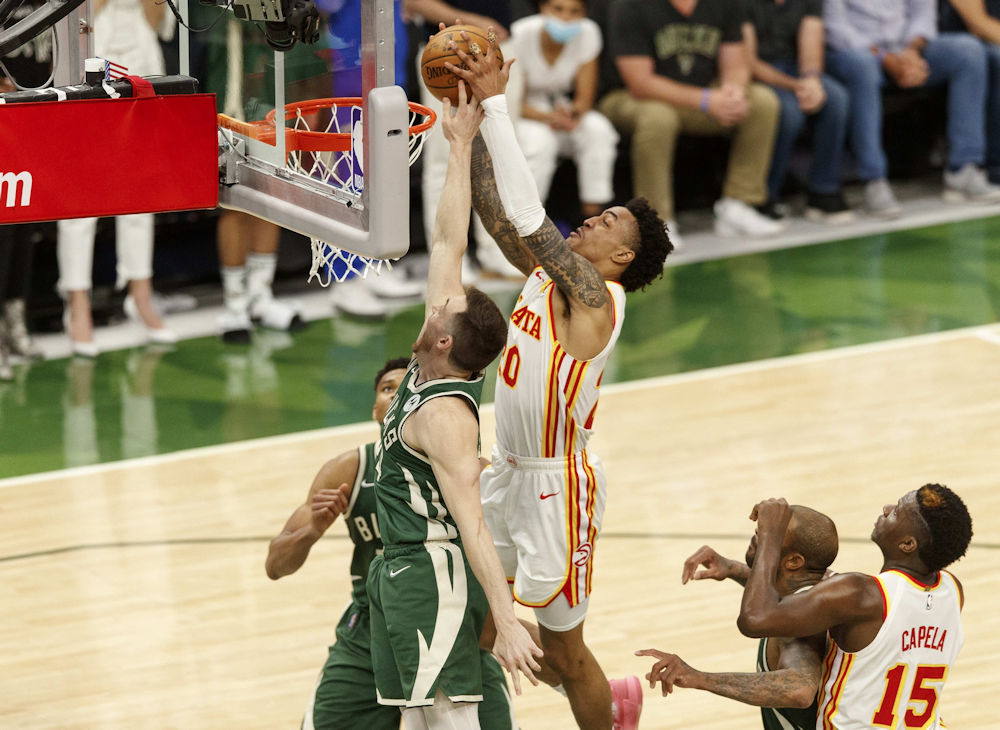 Capable de se relever les manches et d’adopter l’attitude exemplaire du col bleu prêt à mettre les mains dans le cambouis, John Collins réalise pour le moment des playoffs de haute voltige. Pour ses tout premiers… Parti à 12 points et 6 rebonds sur le premier tour face à New York, il a depuis haussé le ton avec 15 points et 10 rebonds face à Philly. Et il ne serait pas étonnant de le voir faire encore mieux face aux Bucks.