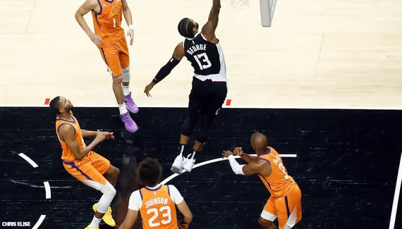 Le “momentum” de Los Angeles prend un peu plus d'ampleur après que Devin Booker écopent de ses 2e, 3e et et même 4e fautes en deux minutes. Les Clippers en profitent alors pour enfoncer le clou. George envoie Zubac au dunk, George plante un tir primé, et l'écart atteint les quinze unités (71-56) !