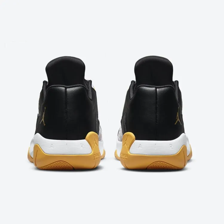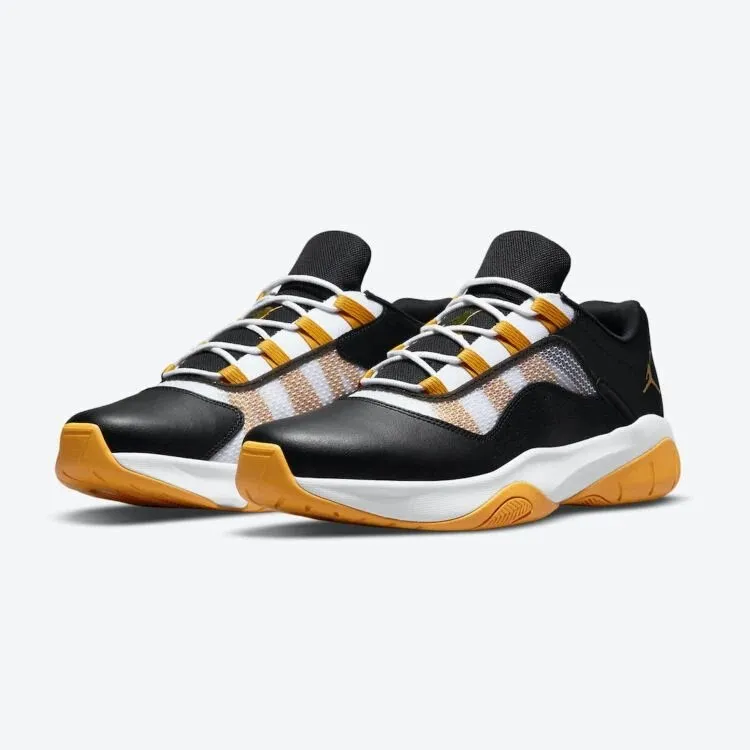 « Jordan Brand » a multiplié les nouveaux coloris de sa Air Jordan 11 CMFT Low ces derniers temps. Prochaine version en date, espérée pour cet été, une « Black Gum » en noir, blanc et or « métallique » qui fait mouche, avec une maille en mesh blanc recouverte de superpositions en cuir noir.