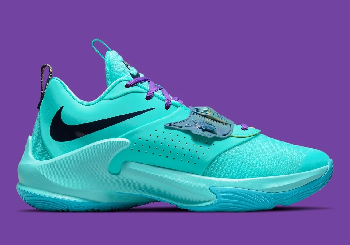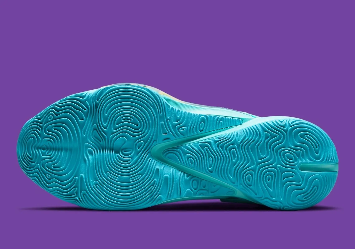 La marque au « Swoosh », qui apparaît à nouveau en inversé sur la toute nouvelle chaussure signature de la star des Bucks, avait mis les petits plats dans les grands en dévoilant deux coloris : noir et violet et « Orange Freak ». Et on apprend aujourd'hui qu'un nouveau coloris turquoise et violet, sur la base de la première fuite parue sur les réseaux le mois dernier, va bientôt sortir. Un modèle qui collerait plutôt bien à l'univers du prochain Space Jam, soit-dit en passant.