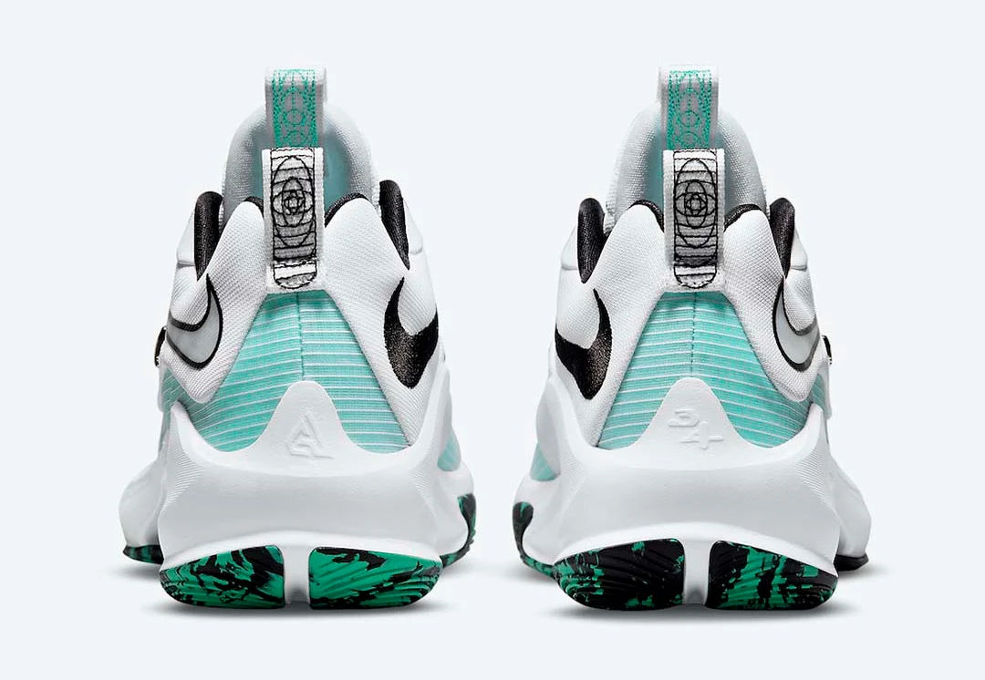 Nike multiplie les coloris de la très réussie Zoom Freak 3, et cette fois, place à la sobriété avec ce mélange de vert, de blanc et de noir. Elle rappelle encore davantage la KD14, avec donc une sangle permettant de verrouiller l’avant du pied et deux unités Zoom Air sous la plante du pied.