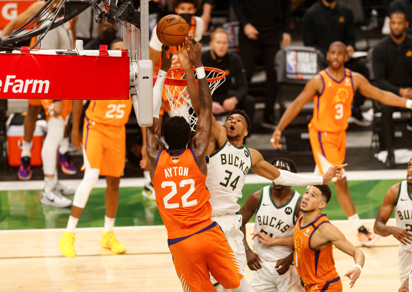 Ça commence avec le poster de Cameron Johnson sur P.J. Tucker, avant le doublé de Giannis Antetokounmpo dans le “money time”, avec son contre décisif sur Deandre Ayton dans le Game 4 puis son alley-oop dans le Game 5.