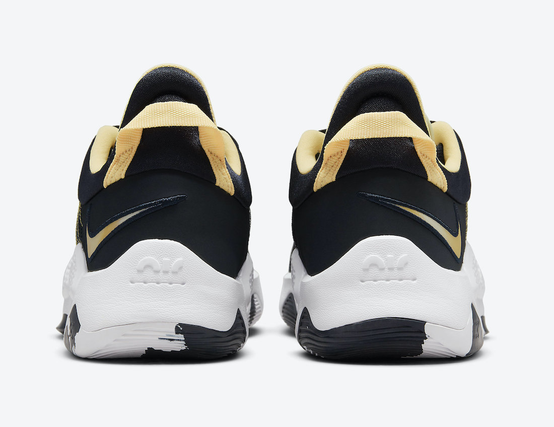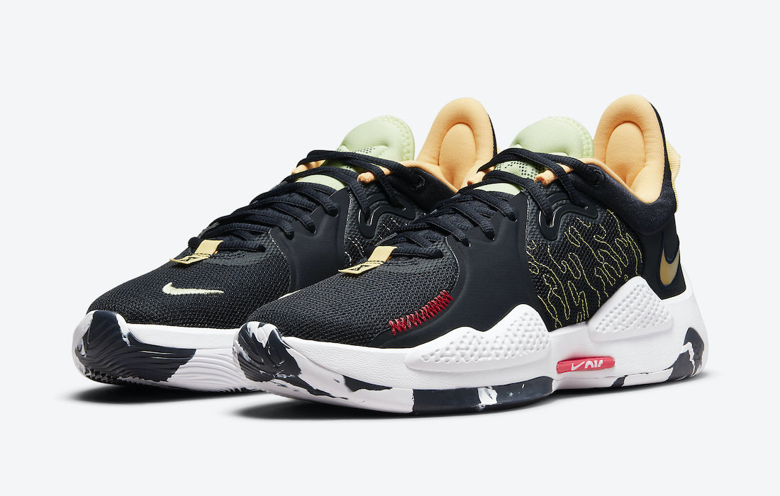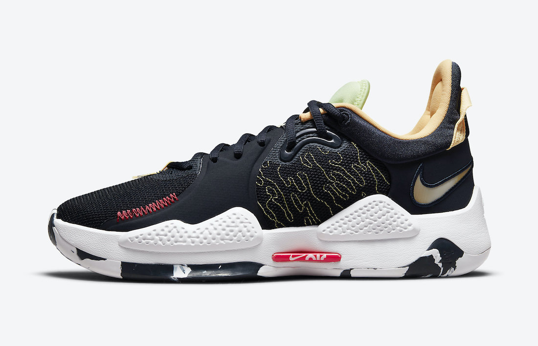 C’est l’un des meilleurs modèles du marché, mais aussi l’un des plus souvent soldés, et pourtant la PG5 n’est pas aussi populaire que d’autres modèles Nike. Pas certain que ce coloris casse la baraque, mais voici le “Navy Neon”, avec donc cette languette flashy, et ses renforts bien marqués au niveau du tendon d’Achille.