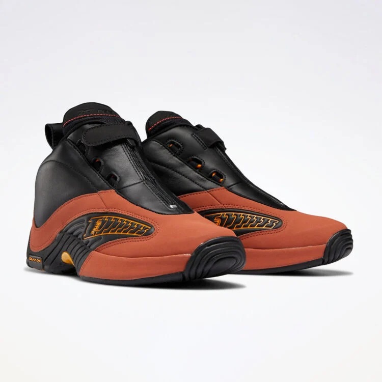 Reebok a sorti le grand jeu pour les vingt de l’épopée des Sixers qui a mené les troupes d’Allen Iverson jusqu’en finales NBA. La Answer IV a ainsi été remise au goût du jour à travers plusieurs nouveaux coloris, dont cet exemplaire à paraître prochainement, une Answer IV « Terracotta », du nom de la couleur utilisée pour la bande en nubuck parcourant la chaussure. Celle-ci part du haut du talon et recouvre l’avant de la paire, ainsi qu’une partie de la semelle.