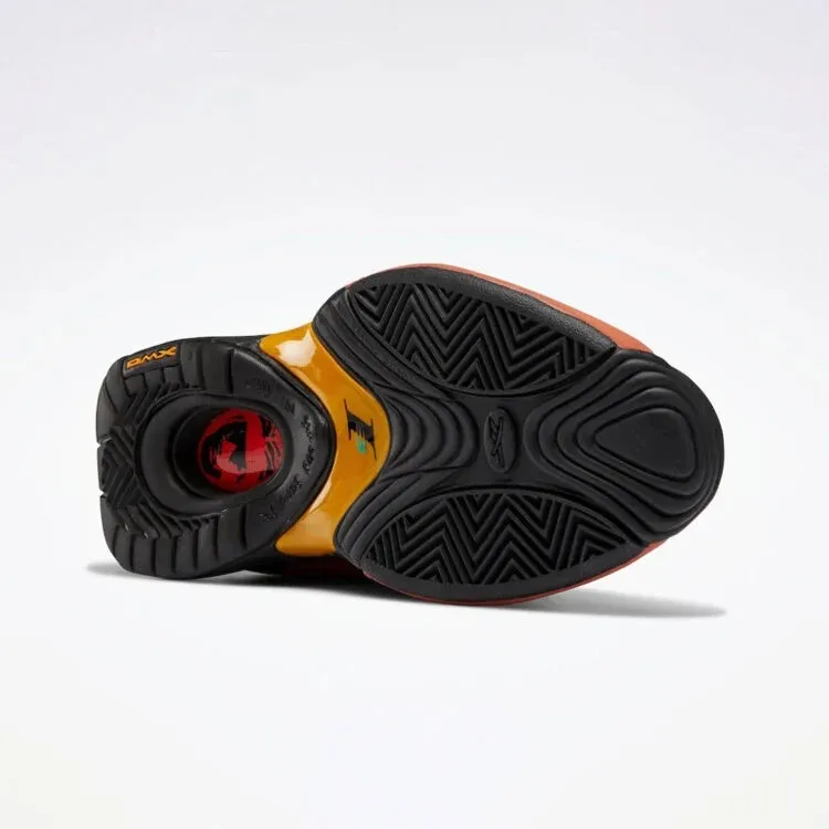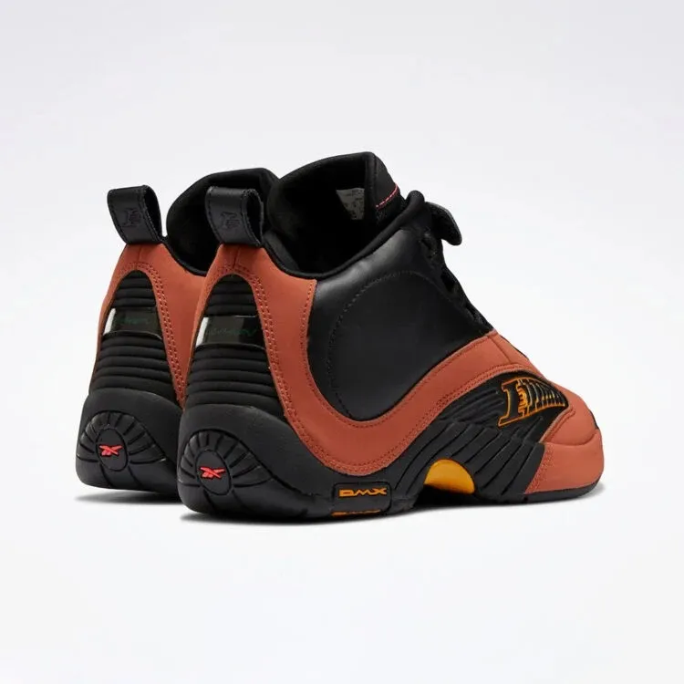L'empeigne et la couverture sur le dessus de la languette sont en noir, avec des marques d'orange au niveau de celle-ci, tout comme sur les contours du I3 dont le 3 ressort aussi en orange, que l'on trouve également au milieu de la semelle. Les éléments « classiques » de la Answer IV sont également présents, du « DMX » au visage d'AI apparaissant sous la chaussure en noir et rouge.