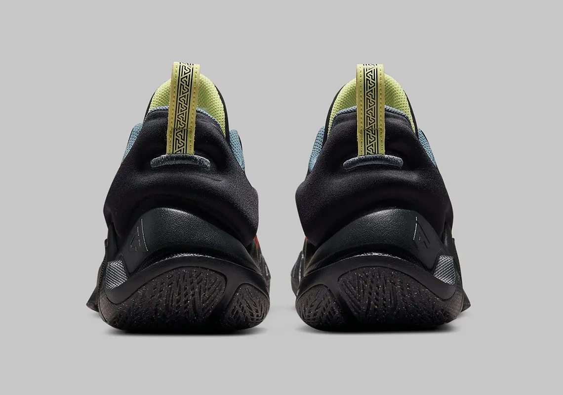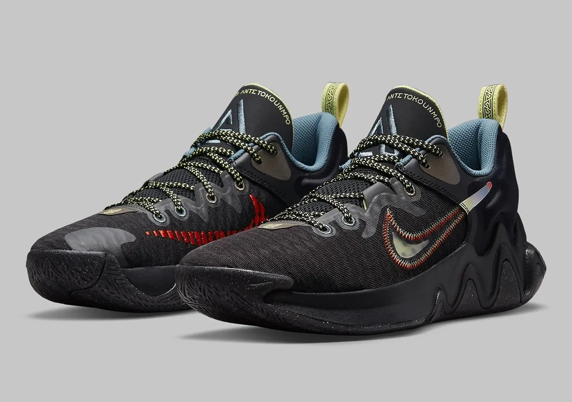 Celui-ci est essentiellement noir, avec de légères teintes de jaunes sur les lacets, la tirette, et le haut de la languette où le nom du MVP des finales 2021 est inscrit. Les deux virgules ressortent pour leur part avec des contours en jaune, orange et rouge autour du « Swoosh » présent sur l'empeigne extérieure, et un logo en rouge vif de l'autre côté.
