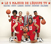 Ironie de l’histoire, il n’y a aucun consultant basket dans ce “5 majeur”… et surtout ils sont 6 ! (Charles Biétry est certes le coach mais le slogan ne colle pas avec les noms inscrits dessous).