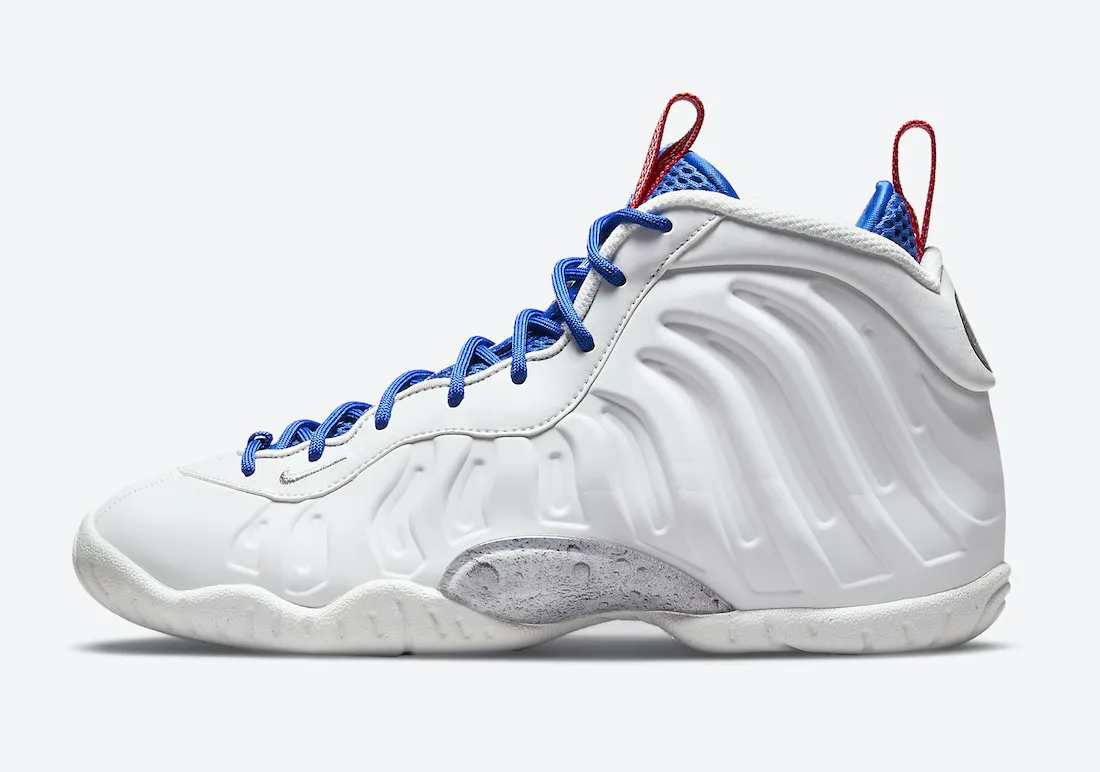 Prêts à viser la lune avec la nouvelle « Little Posite One » ? Nike vient de sortir un nouveau coloris « lunaire » de son modèle « LPO », avec une base blanche, une languette, des lacets et l'intérieur de la chaussure droite en rouge et le même principe appliqué pour la chaussure gauche, mais en bleu, rappelant ainsi les couleurs du drapeau américain.