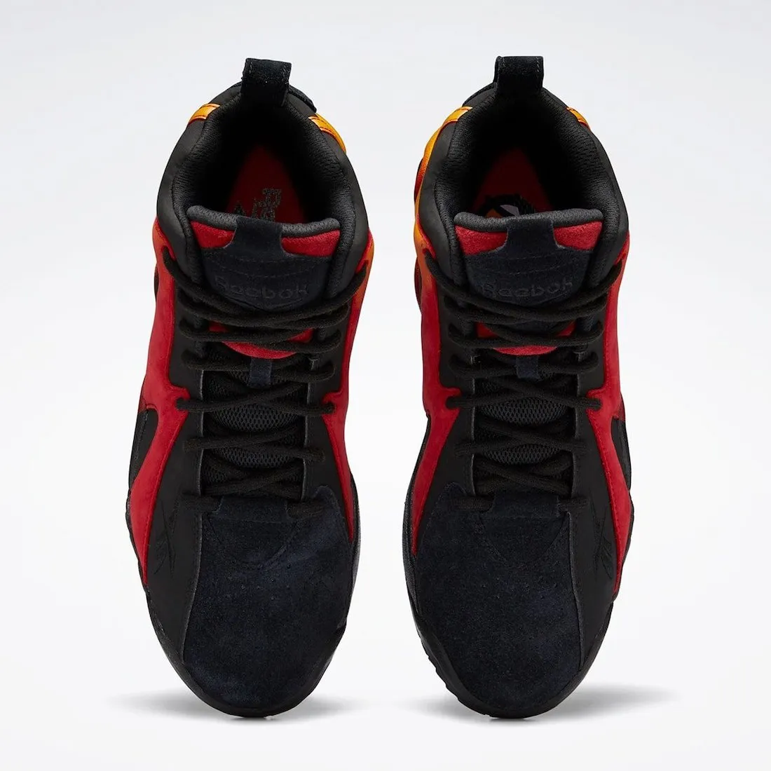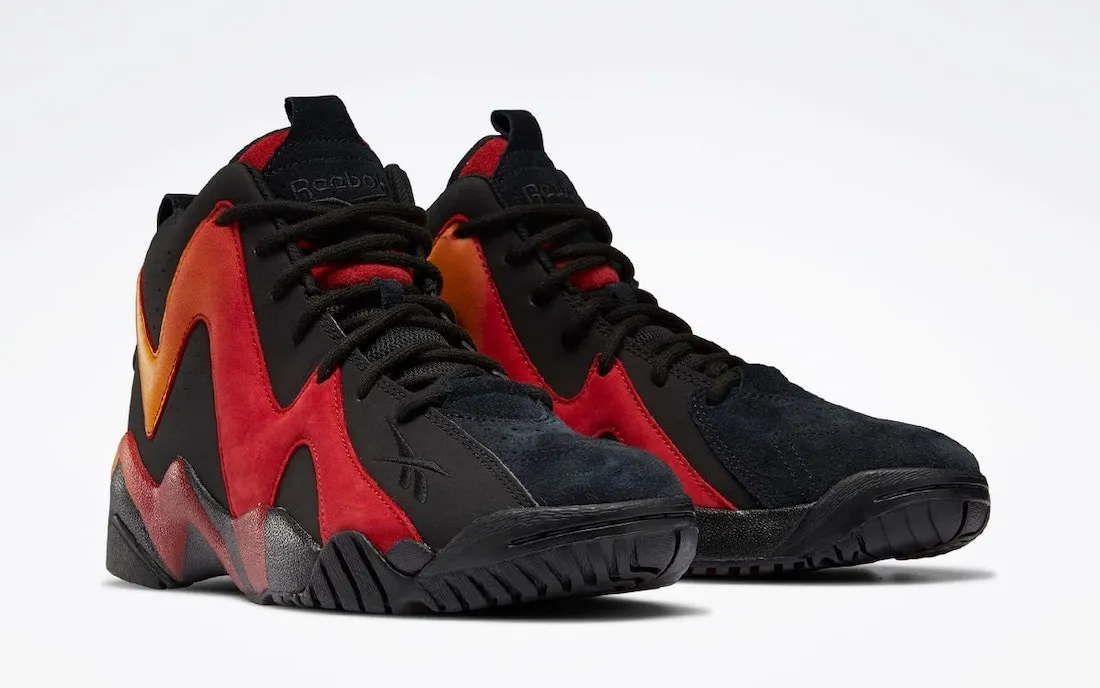 Du sang-froid dans les veines et de la lave aux pieds ! Tel est en tout cas l'idée de la nouvelle « Kamikaze 2 » imaginée par Reebok, avec des bandes en orange-rouge censées représenter une coulée de lave sur une base noire en nubuck et en daim de ce modèle de chaussure montante.