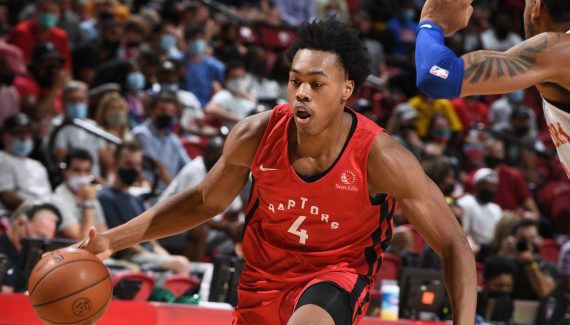 Si on s’attendait à ce que le récent 4e choix de la Draft 2021 apporte de l’énergie en défense, comme sur ce plongeon en début de second quart-temps pour valider son interception, ses 18 points pour sa première sortie doivent être une agréable surprise pour les fans de Toronto.