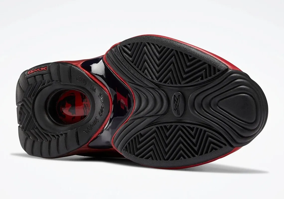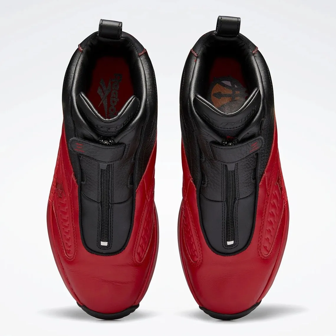 L'arrière et le haut de la paire sont en noir tandis que l'avant de la chaussure est en rouge, le tout reposant sur une semelle extérieure noire. Le logo I3 sur l'empeigne et celui de Reebok sur le talon ressortent en rouge.