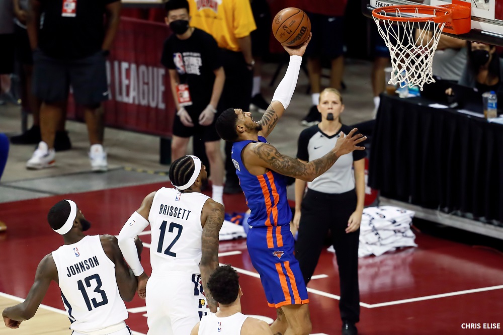 Réduit à 11 minutes au relais de Randle l’année dernière, Toppin a plus que triplé son temps de jeu (36,5 minutes) cet été à Las Vegas. De quoi lui permettre de montrer ses qualités de scoreur avec 23 points de moyenne (46% au tir dont 35,5% de loin), auxquels on peut ajouter 8 rebonds par match.