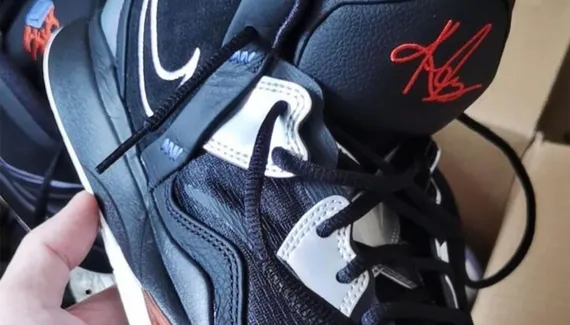 Rien d'officiel encore sur ces quelques clichés, difficile donc de dire s'il s'agit de la version définitive. On note toutefois quelques inspirations issues des modèles précédents comme la Kyrie 6 avec un gros « swoosh » en noir et blanc sur la partie arrière de la chaussure. Principalement noire, la tige mêle “mesh”, cuir et daim avec des plaques blanches pour entourer les accroches des lacets.