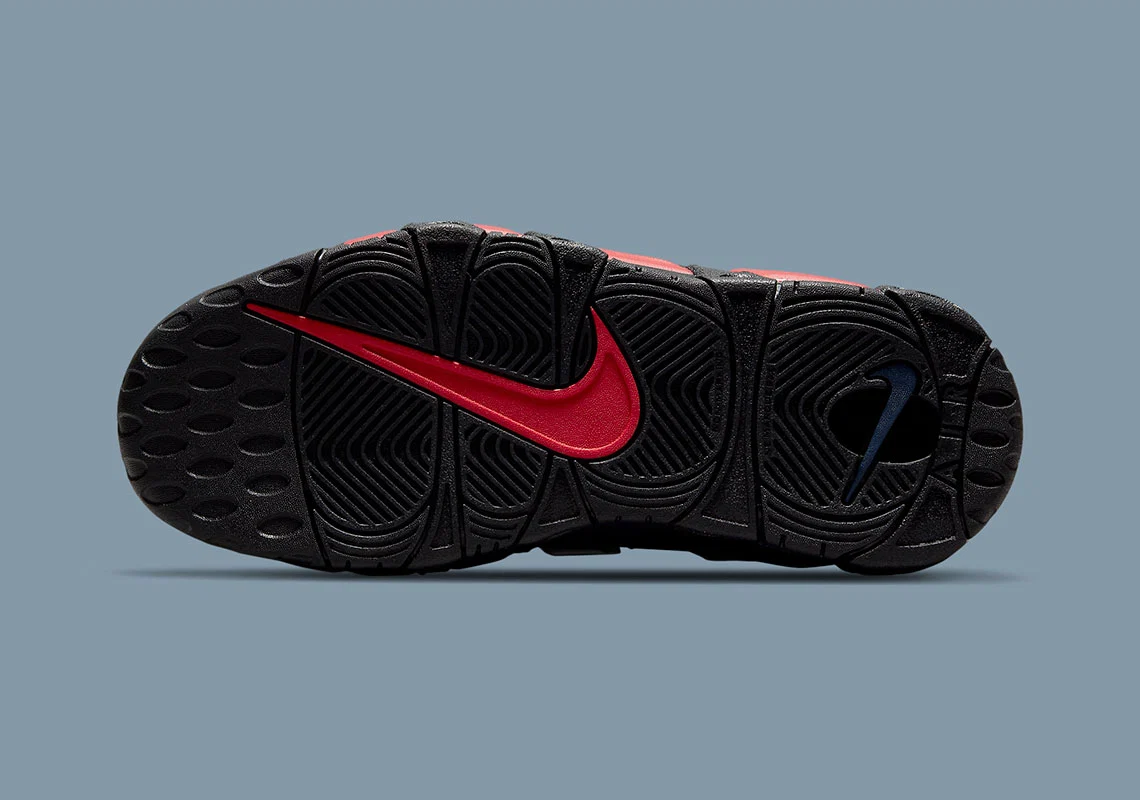 Le bleu marine et le rouge descendent jusqu’au niveau de la semelle intermédiaire et se rejoignent au niveau du talon, où l’on retrouve le logo Nike en gris et celui de la marque Pippen. Les deux autres signes Nike, sur l’avant de la chaussure et la semelle, apparaissent également en gris. Pas de date de sortie pour l’heure, cette Nike Air More Uptempo pourrait atteindre les 170 dollars.