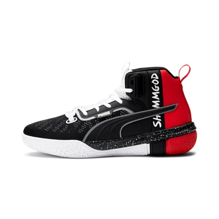 Désormais assistant aux Mavs de Dallas, God Shammgod va cette fois faire parler de lui à travers une collaboration inédite avec Puma. Celle-ci a donné lieu à une toute nouvelle « Legacy », se présentant sous un modèle principalement noir, avec du rouge au niveau du talon et une semelle extérieure blanche. L’inscription « Shammgod » parcoure la chaussure verticalement au niveau du talon jusqu’au col, traversée par la bande « Puma ».
