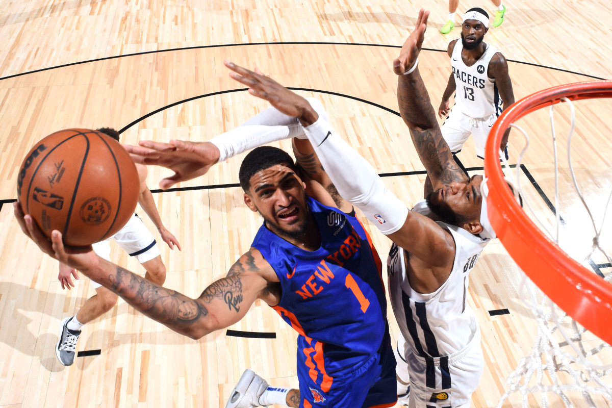 Après une saison rookie assez frustrante, où il a découvert la méthode Thibodeau, Obi Toppin a par contre été très à l’aise pour sa première ligue d’été. Utilisé dans un rôle de poseur d’écrans qu’on sert sur la sortie, il a pu montrer tout ce qu’il sait bien faire sur un terrain de basket, à savoir décoller directement vers le cercle ou rentrer le petit tir à mi-distance, voire le 3-points (à 34% de réussite).