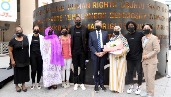 Masai Ujiri était donc présent en compagnie du maire de la ville, John Tory, pour l’inauguration de “Humanity”.
