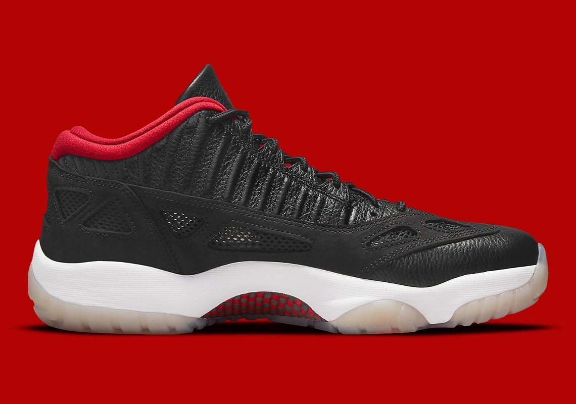 Régulièrement remise au goût du jour, la Air Jordan 11 Low n’avait encore été habillée du « Dress code » complet appelé « Bred », contraction « Black » et « Red » selon le coloris popularisé par Michael Jordan lors de la saison 1995-1996.