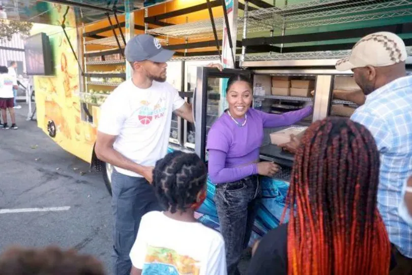 Pour avoir un autographe de Stephen Curry bien sûr, mais aussi pour découvrir les attractions du bus baptisé “Eat. Learn. Play”, du nom de la fondation du couple, offrant la possibilité aux enfants défavorisés de la région d'accéder à des repas, de recevoir des livres gratuitement, mais aussi de jouer au basket.