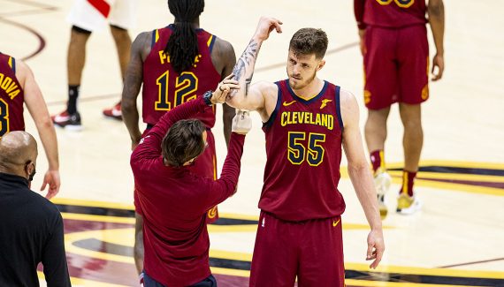 | 2020-21 | CLE | 16 | 17:56 | 58.2 | 33.3 | 68.6 | 1.6 | 4.4 | 6.0 | 2.5 | 2.8 | 0.5 | 1.4 | 1.2 | 8.3 |