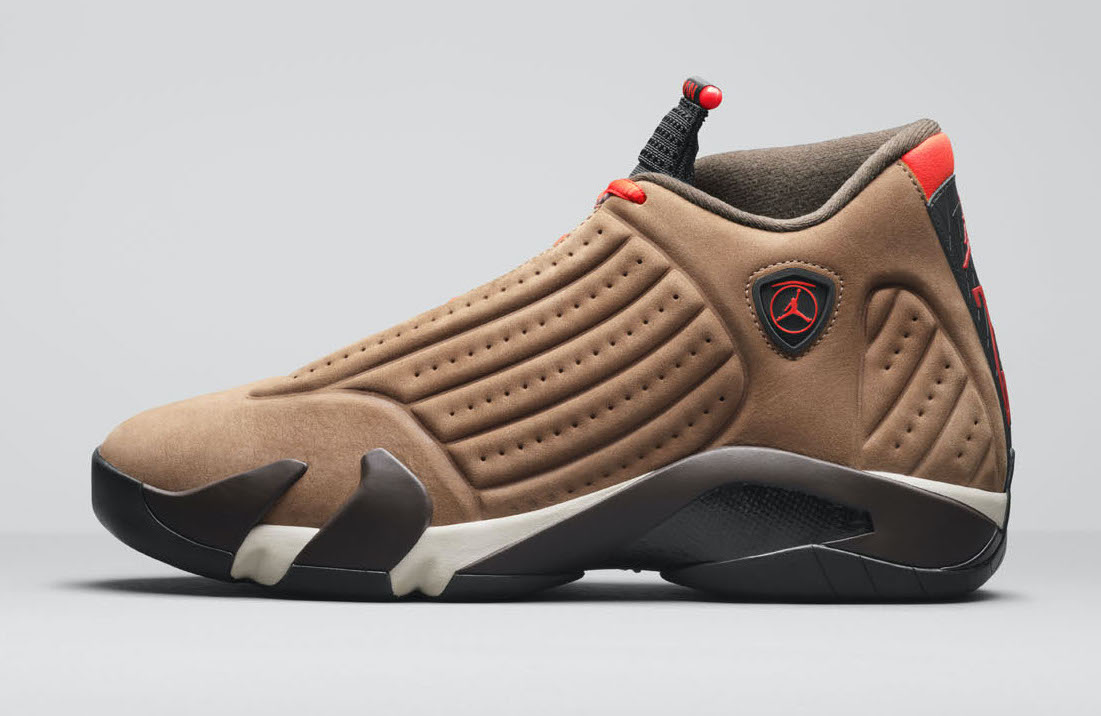 A l’approche de la saison hivernale, Jordan Brand a donc imaginé une Air Jordan 14 capable de résister à des conditions extrêmes. Il fallait y penser, et c’est ainsi qu’est née la “AJ 14 Winterized”. Avec une silhouette un poil plus élevée, et une composition en daim renforcée par du cuir plus résistant.