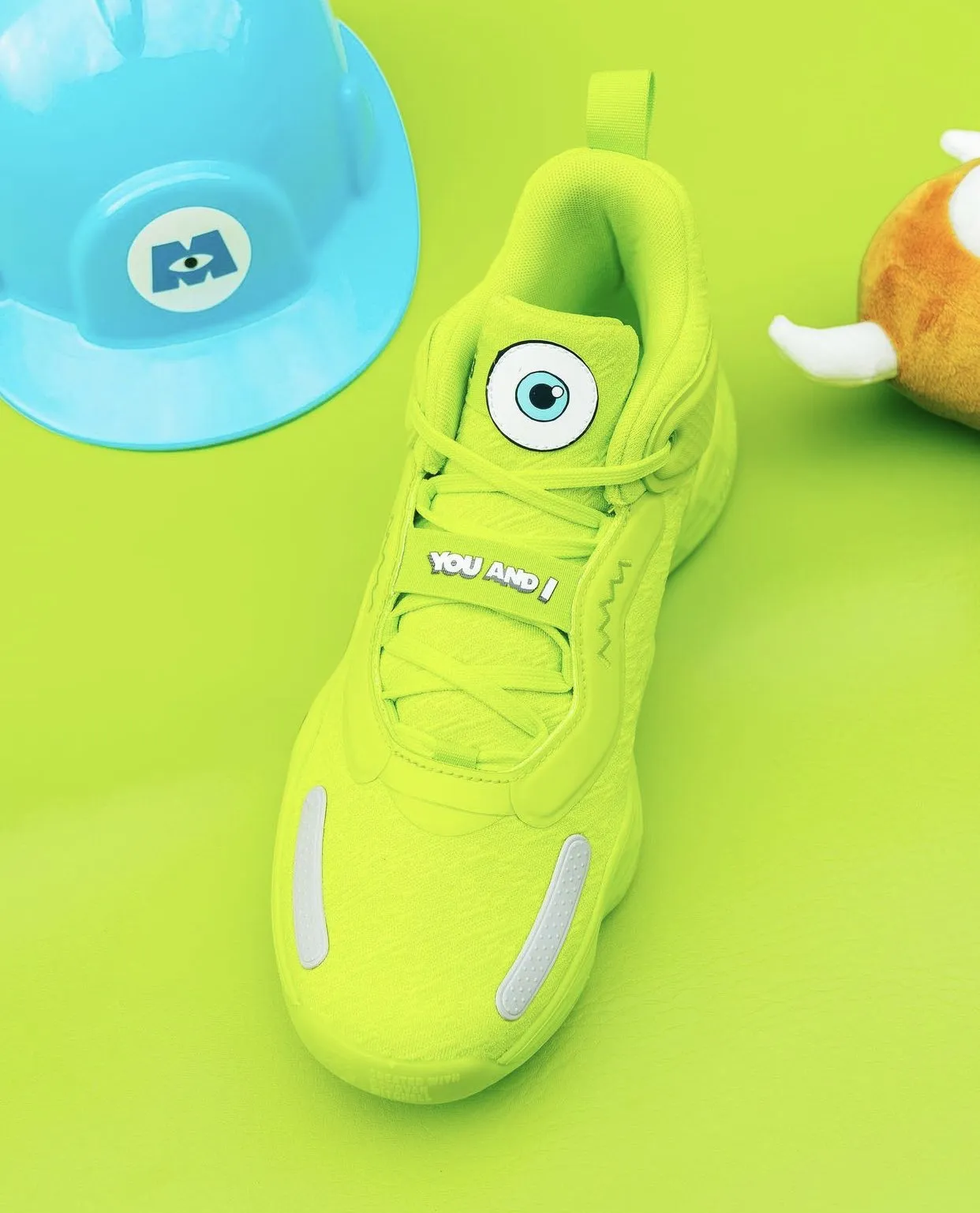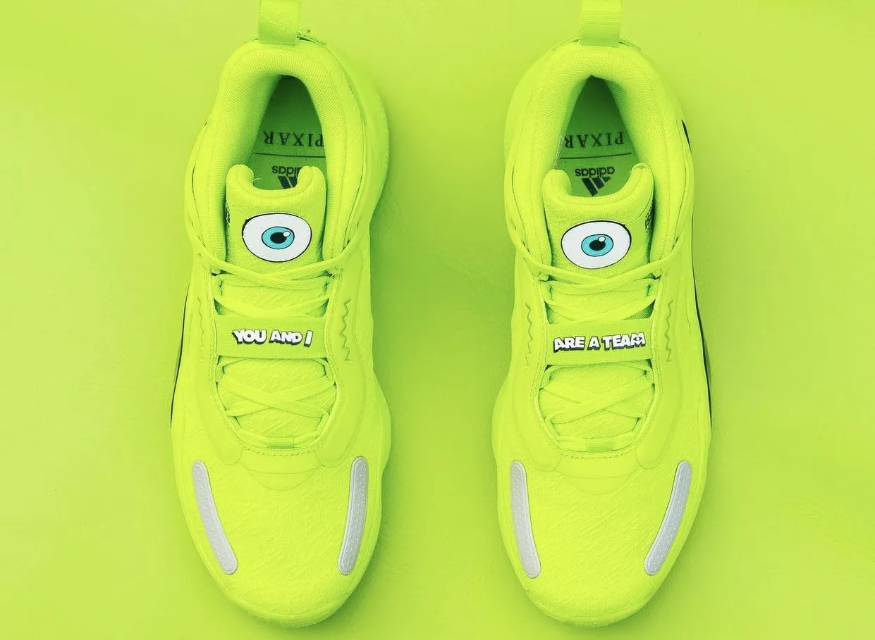 Autant le dire tout de suite, vous ne passerez pas inaperçu avec la nouvelle D.O.N. Issue 3 « Bob Razowski », du nom du célèbre personnage du film d'animation, un mini-cyclope vert. Le modèle ressort donc en vert fluo avec l’œil de Bob Razowski sur la languette, deux bandes gris-métal à l'avant du pied et les inscriptions « You and I » et « Are a team » sur les étiquettes recouvrant une partie des lacets.